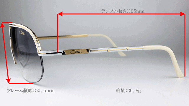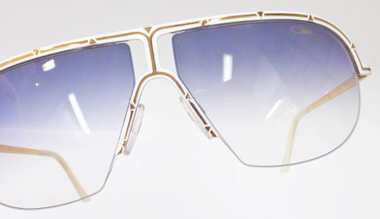![]() フロントからテンプルにかけて施された上品なホワイトカラーに ゴールドトーンのライン&トライアングル装飾でラグジュアリーに魅せるCAZALの技 |