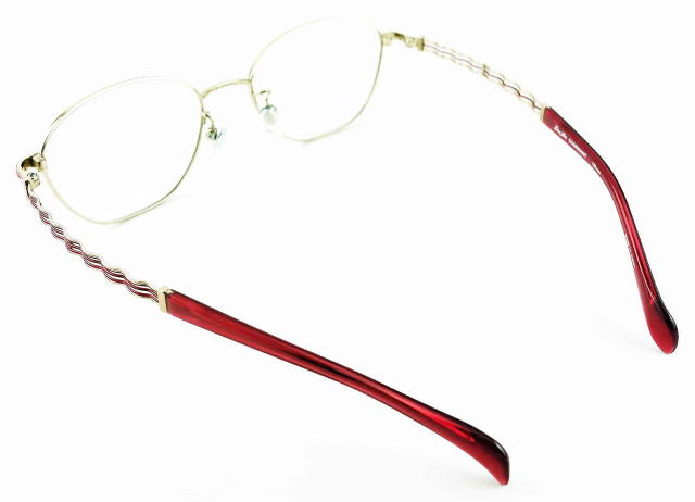 ![]() フロント:レッドカラー・ゴールドカラー テンプル:レッドカラー・ゴールドカラー ![]() エレガントなウェーブデザインのテンプルが横顔をおしゃれに見せる |