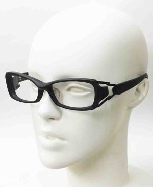 | ◆BTY18 Material:Acetate 分厚いボディに鋭角的に入るテンプルの切り替えし。黒一色だからこそ映える陰影が美しい。 レンズシェイプはワイドで視界も良好。プレーンではあるが計算されたバランスとデザインは高い完成度を誇る。 |