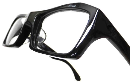 | ◆BTY18 Material:Acetate 分厚いボディに鋭角的に入るテンプルの切り替えし。黒一色だからこそ映える陰影が美しい。 レンズシェイプはワイドで視界も良好。プレーンではあるが計算されたバランスとデザインは高い完成度を誇る。 |