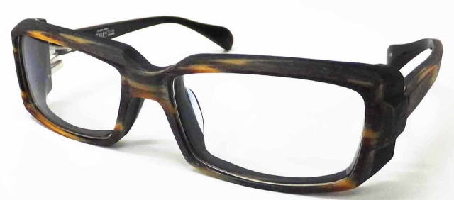 | ◆BTY25 Material:Acetate エッジの効いたレンズシェイプに独創的なテンプルサイドのカッティング。 QBRICKの中ではやや細身のモデルだが存在感は抜群。 |