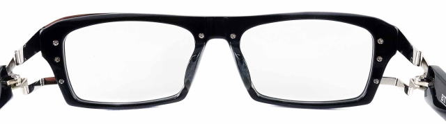 ◆BTY18 Material:Acetate 分厚いボディに鋭角的に入るテンプルの切り替えし。黒一色だからこそ映える陰影が美しい。 レンズシェイプはワイドで視界も良好。プレーンではあるが計算されたバランスとデザインは高い完成度を誇る。 |