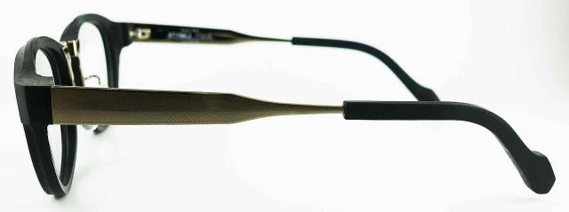 ![]() Raw Blackカラー フロント表面:マットブラック/フロント裏面:マットブラック フロント中央部分(ブリッジ):アンティークゴールド系色に格子ライン模様 テンプル:アンティークゴールド系色に格子ライン模様 ![]() |