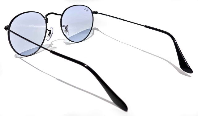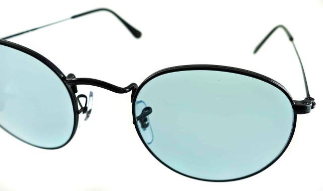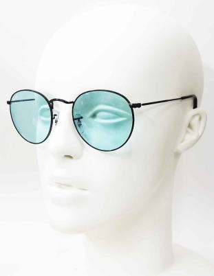 | RayBan3447-002-64のレンズカラーは 室内と屋外ではカラーの印象が異なります。 室内では、ライトグリーン系の印象ですが 屋外で紫外線下だとライトブルーカラーの印象になります。 |