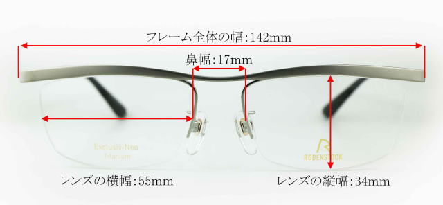 | ローデンストックカールトンメガネフレーム R0040-B(チタン無垢) 55□17-145 標準顔モデルによる着用イメージ |